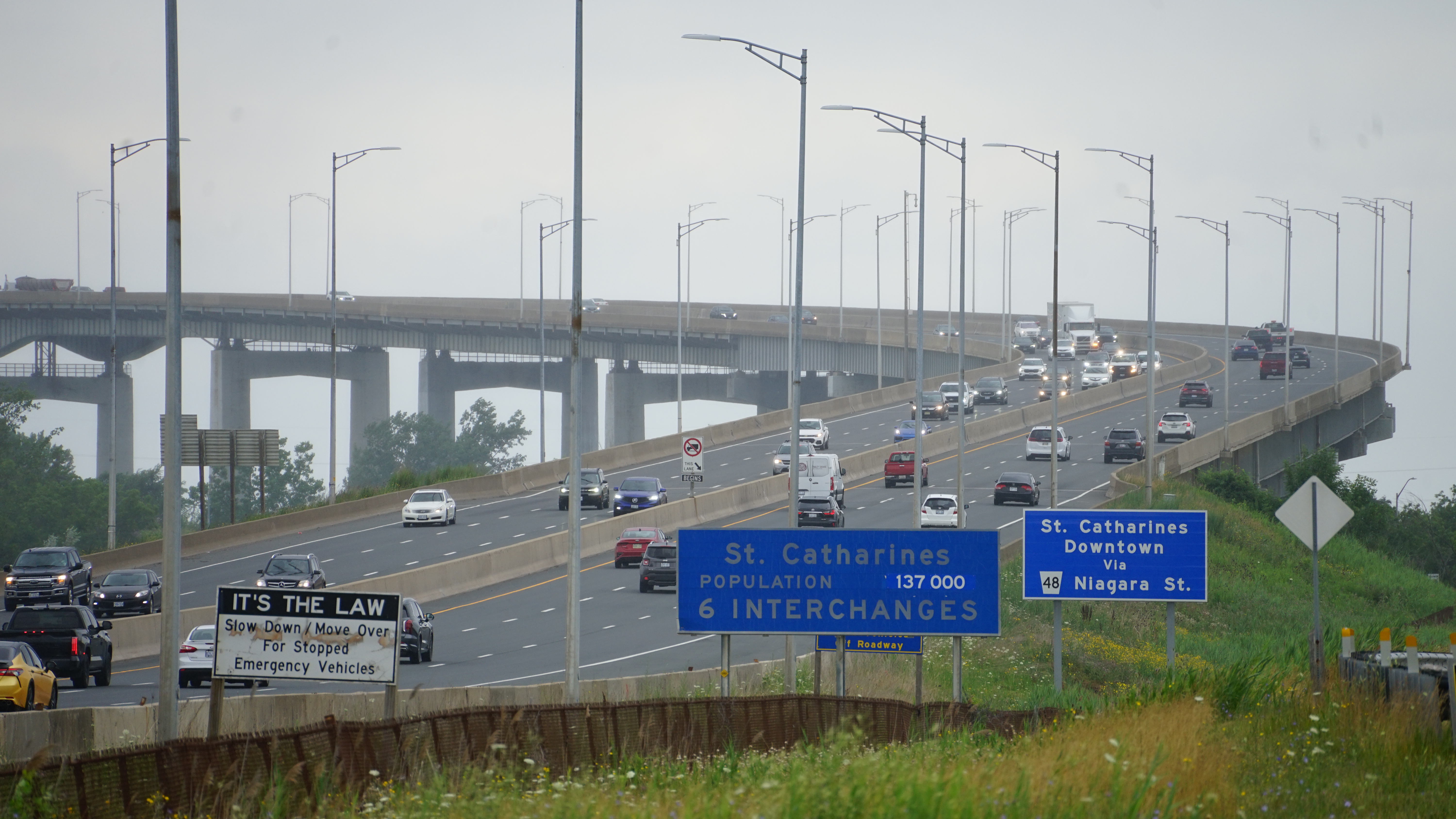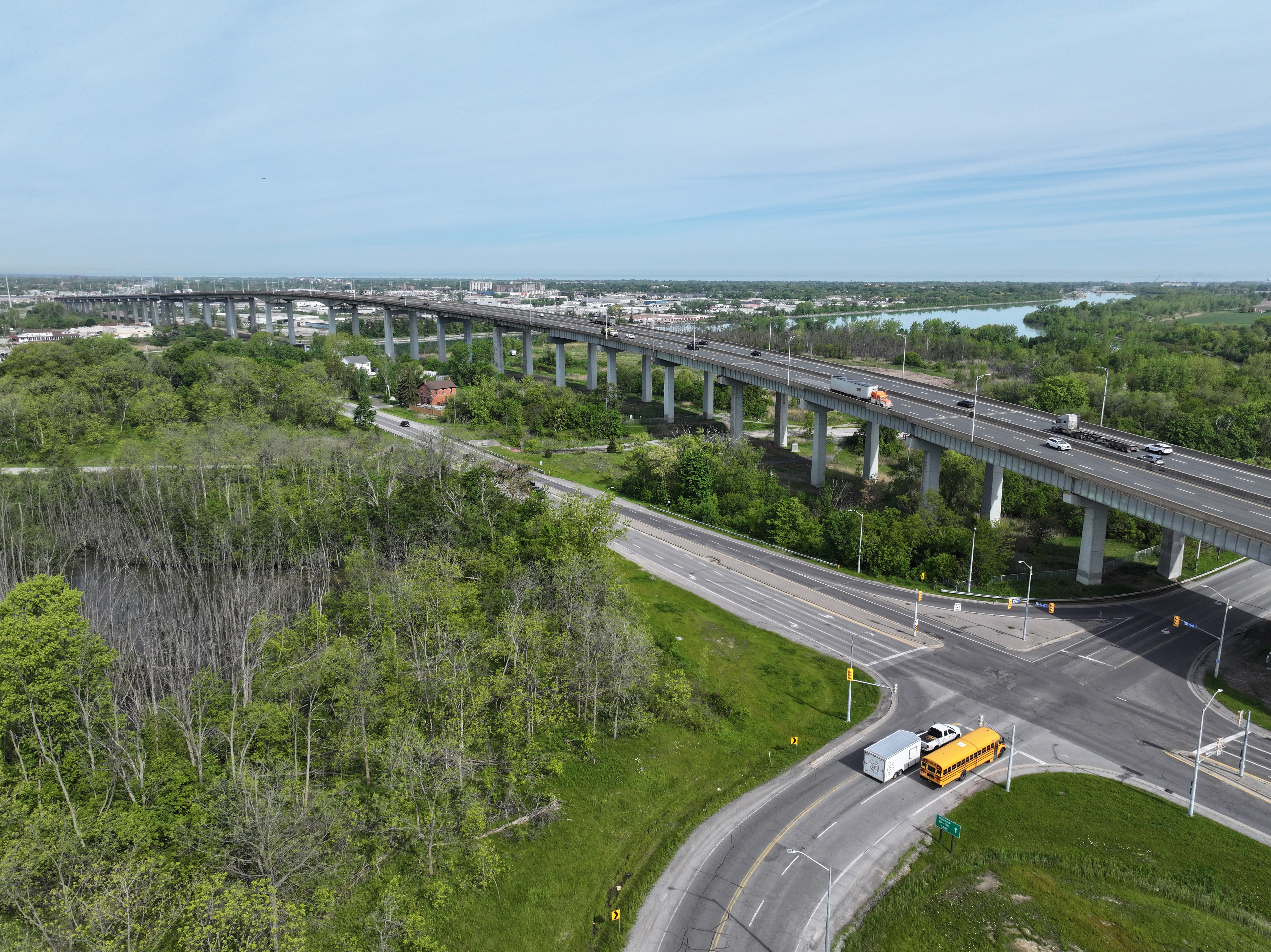 Photo Gallery « back to albumExisting Garden City Skyway (2025) Aerial view of the Garden City Skyway from the east facing St. Catharines.View of the Garden City Skyway from below.View from underneath the Garden City SkywayView of Garden City Skyway from the Welland Canal.Truck travelling across the Garden City Skyway.View underneath the Garden City Skyway.View facing east of the Garden City Skyway.